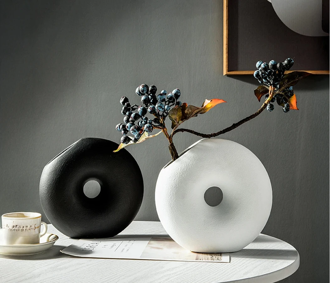 Ваза керамическая декоративная 4 * H16 * 16,5, 1 шт., белый 4630270/064936 на фото справа