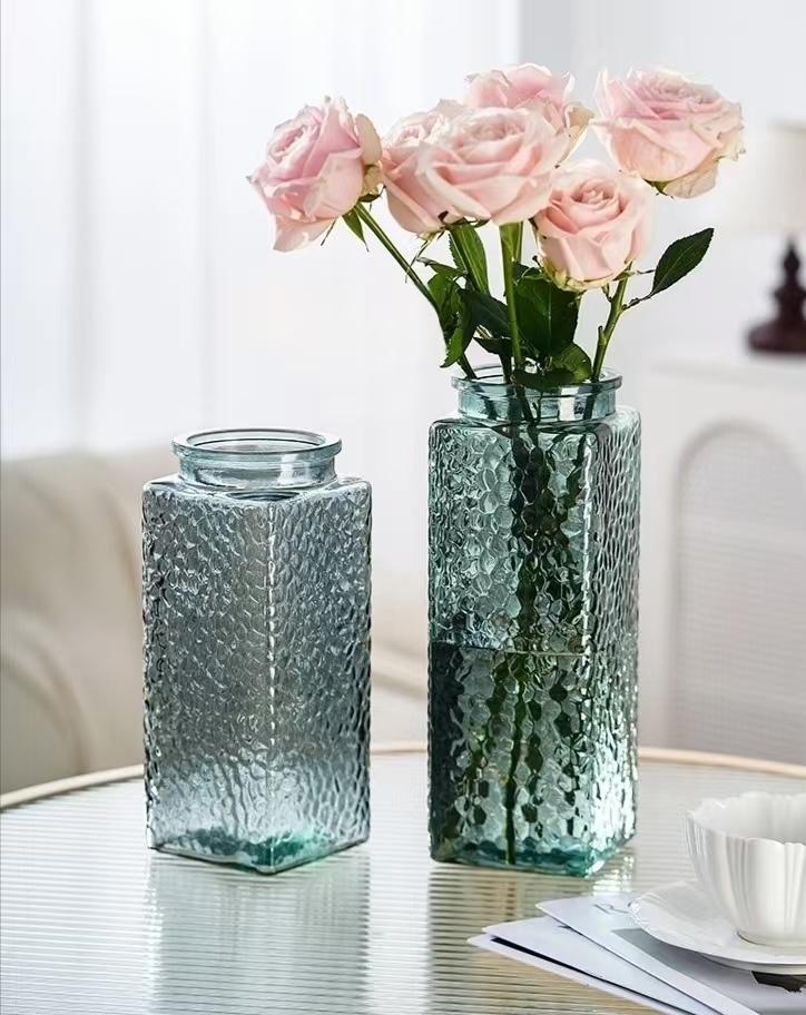 Ваза стеклянная 10*10*28 см, 1 шт., зеленый 4640108/885343