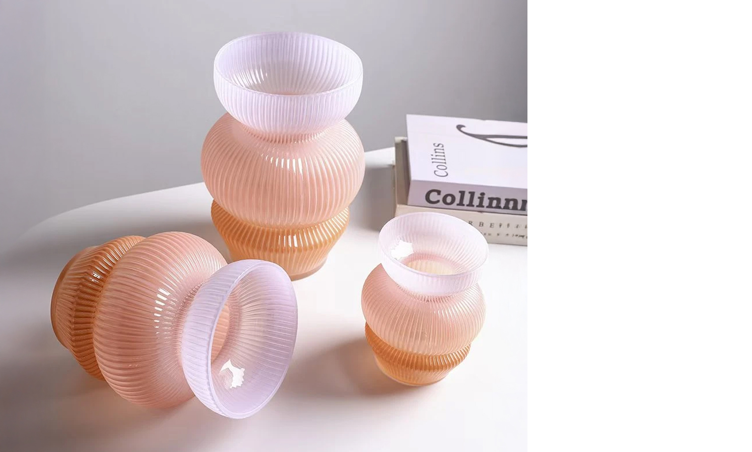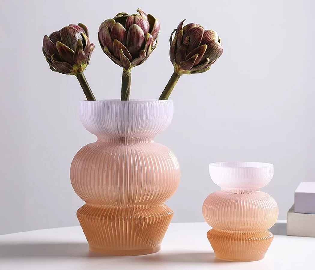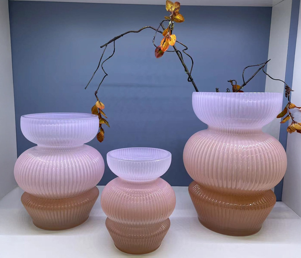 Ваза стеклянная D12 * H15 см, 1 шт., градиент коричневый/розовый/сиреневый 4630270/037077 на фото справа