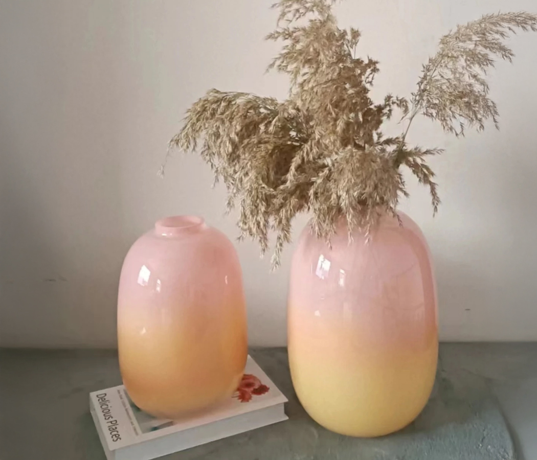 Ваза стеклянная D15 * H26 см, 1 шт., градиент розово-желтый 4630270/038180